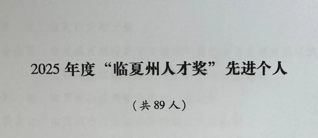 近日,由中共临夏州委、临夏州人民政府决定,授予9个集体、89名个人2025年度“临夏州人才奖”荣誉称号。其中,