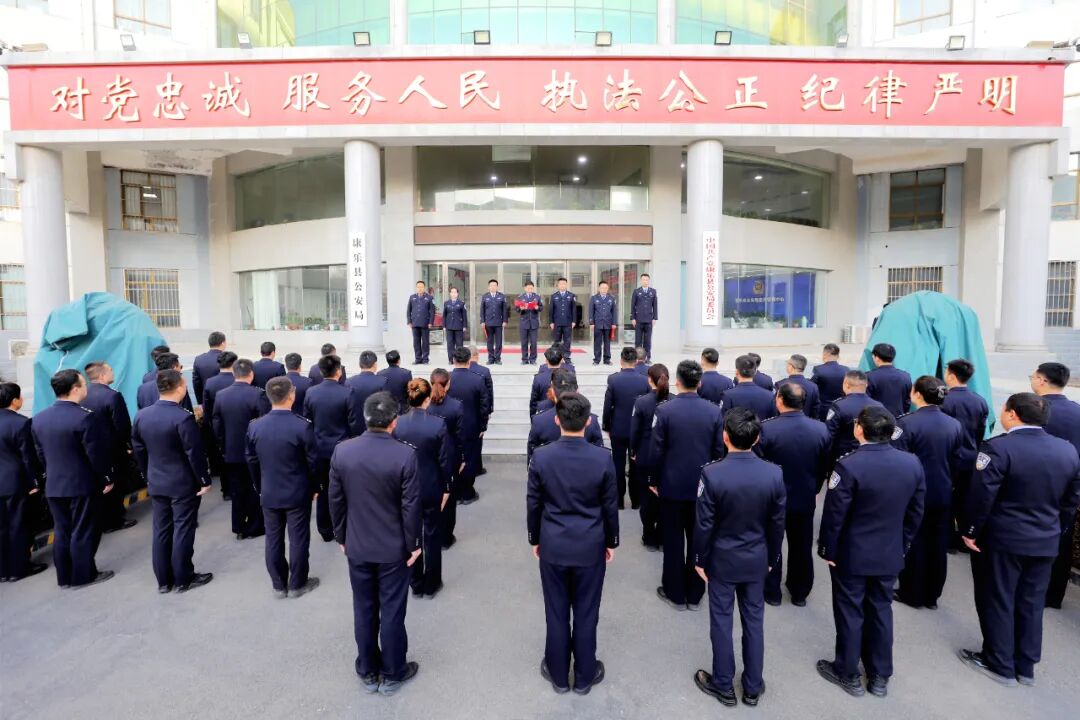州公安局新闻宣传科、网安支队负责同志,康乐县公安局在家党委班子成员、各室所队负责同志及专案组全体民警参加仪式。