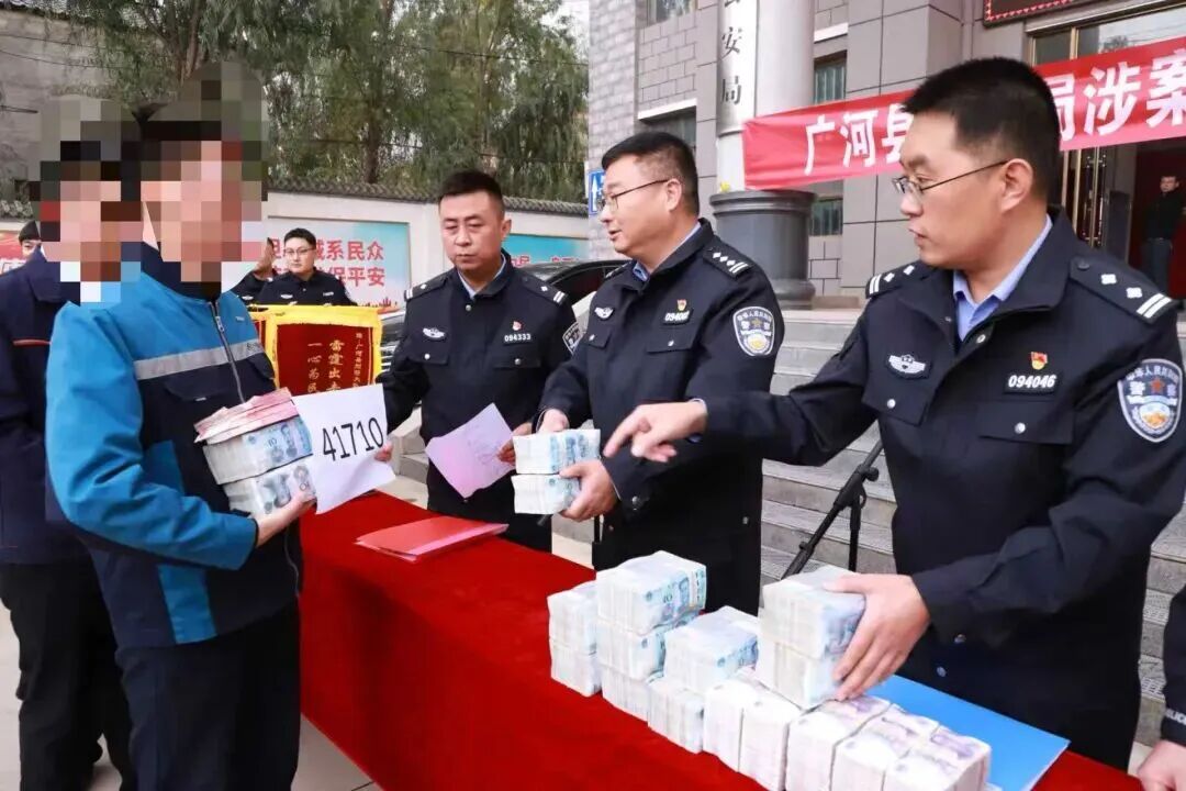 在发还仪式现场,民警严格按照涉案财物管理规范,对前期追缴的35万元现金、25部手机逐一核对信息、确认权属、登记备案,确保每一件财物都精准交还到受害群众手中,让“纸上战果”变成群众看得见、摸得着的安全感。