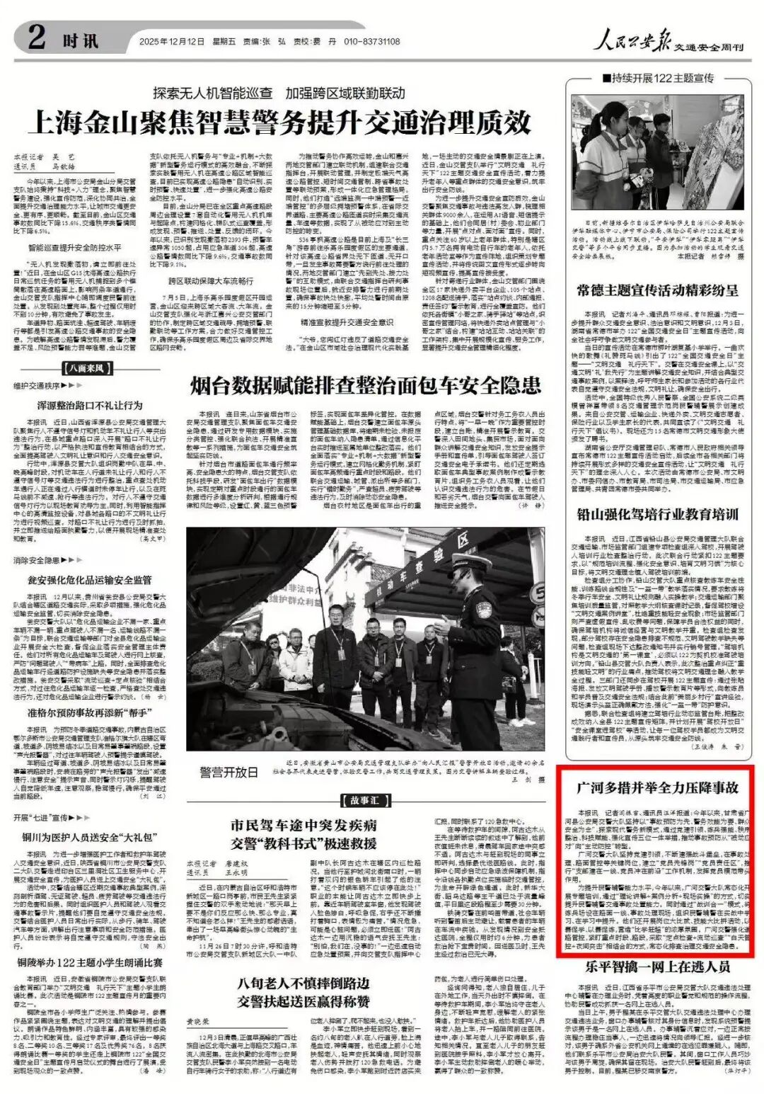 12月12日,《人民公安报》交通安全周刊02版时讯刊发广河公安工作,图文如下: