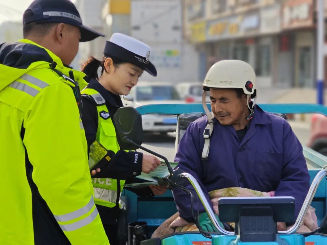 广河县公安局交管大队民警走进街道辖区,向群众耐心宣讲道路安全法、一盔一带、事故应急等交通知识,把安全叮嘱送到群众身边,以实际行动守护老年人出行平安,让敬老爱老的暖流在街头巷尾传递。