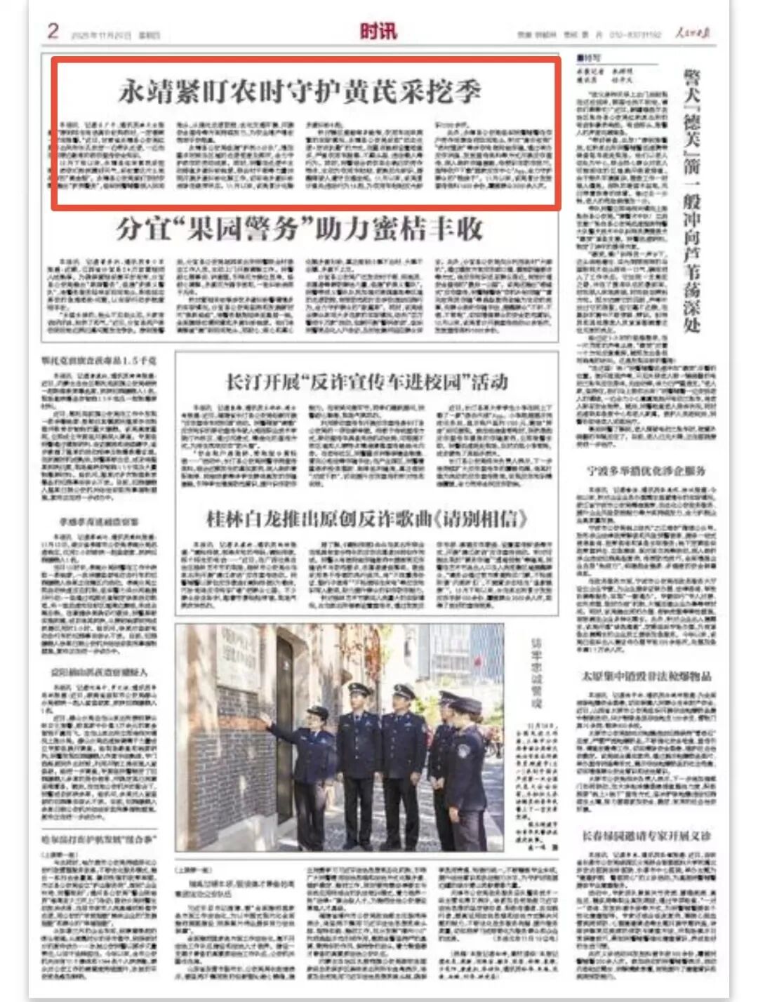 11月20日,《人民公安报》02版时讯刊发永靖公安工作,图文如下: