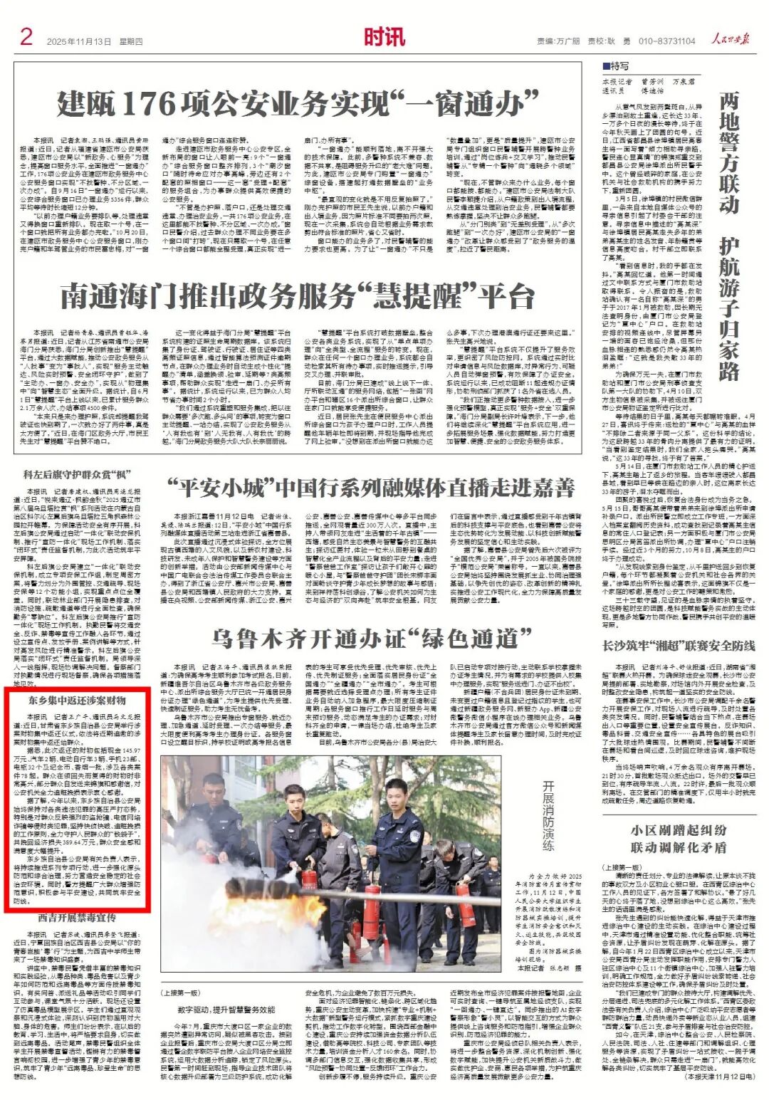 11月13日,《人民公安报》02版时讯刊发东乡公安工作,图文如下: