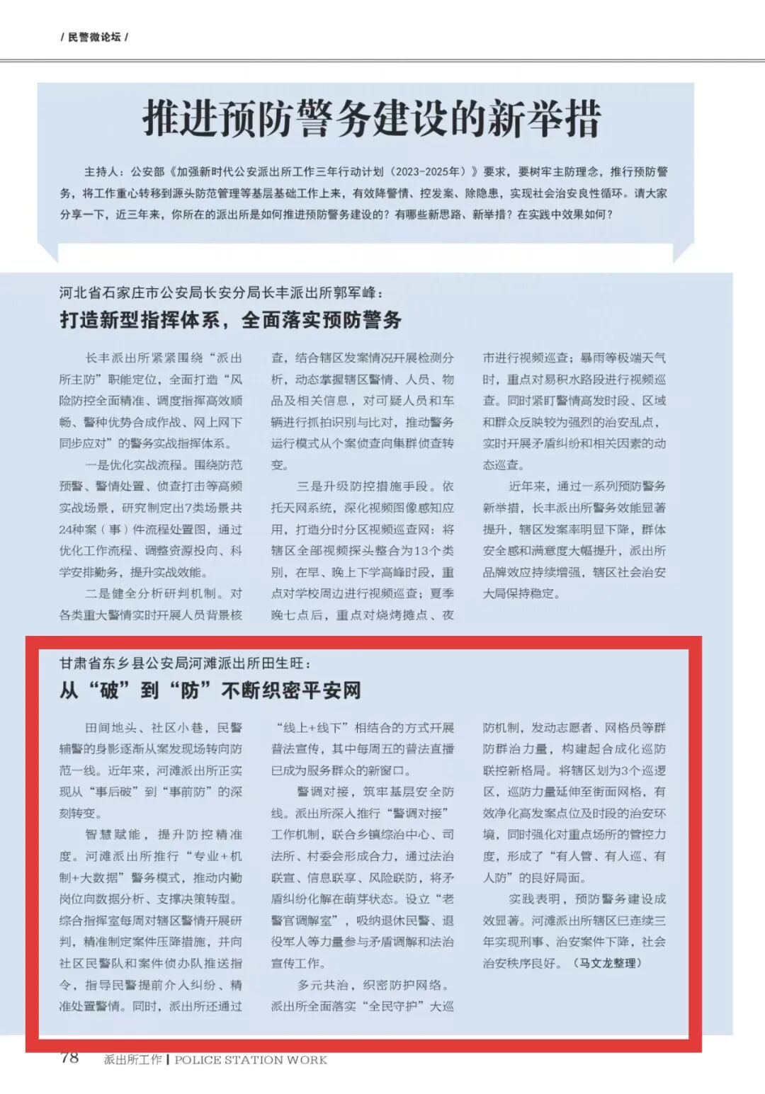 △《派出所工作》杂志第155期报道东乡县公安局工作