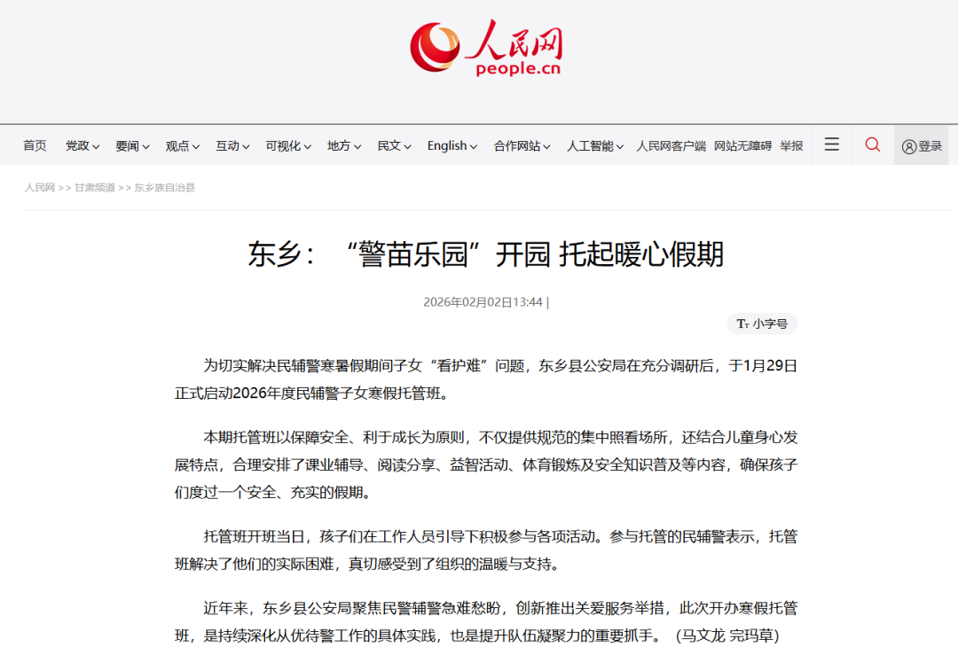 ▲人民网刊东乡县公安局《东乡:“警苗乐园”开园托起暖心假期》信息。