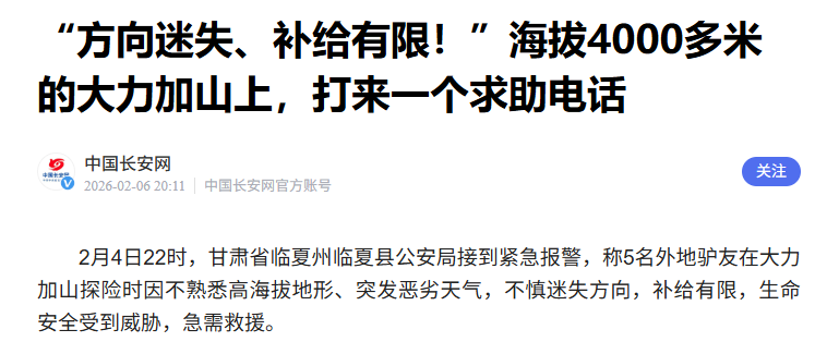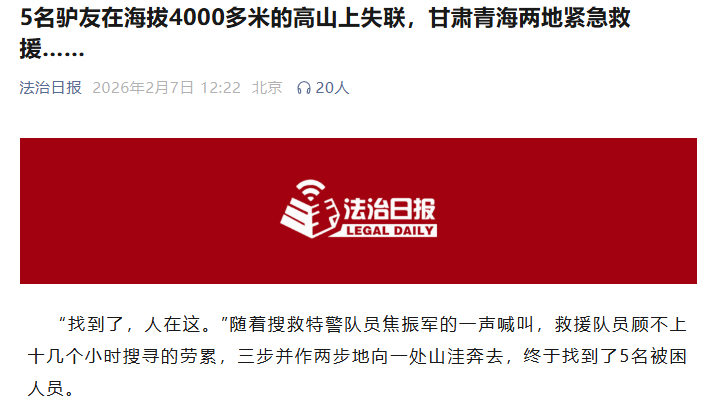 【媒体聚焦】5名驴友在海拔4000多米的高山上失联,甘肃青海两地紧急救援……