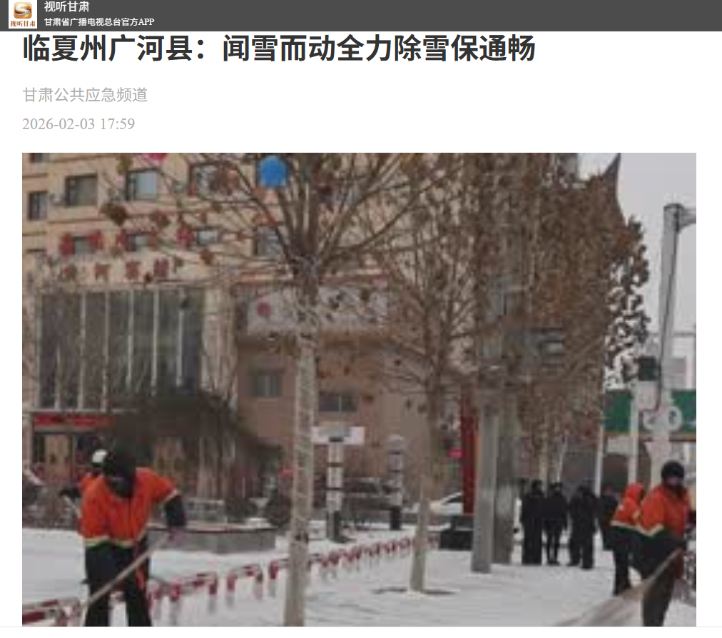 ▲视听刊发临夏市公安局《临夏公安:护航不夜城点亮平安灯》、广河县公安局《临夏州广河县:闻雪而动全力除雪保通畅》信息。