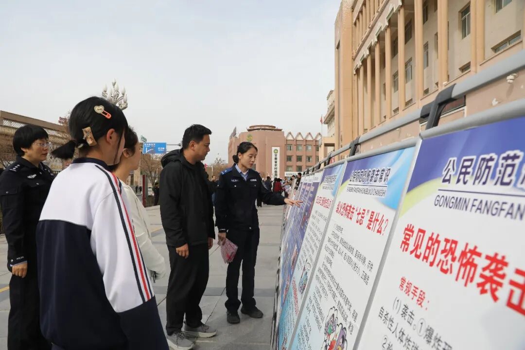 4月15日,康乐县公安局特警大队队员通过发放宣传资料、设立宣传展板等形式,向群众面对面宣讲国家安全法、反恐怖主义法等法律法规,营造了“国家安全,全民参与,全民共享”的良好氛围。