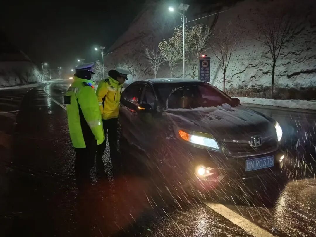 康乐县公安局交管大队全警出动,加强国省道巡逻频次,将雨雪天气影响消除最低,确保辖区道路交通安全畅通有序。