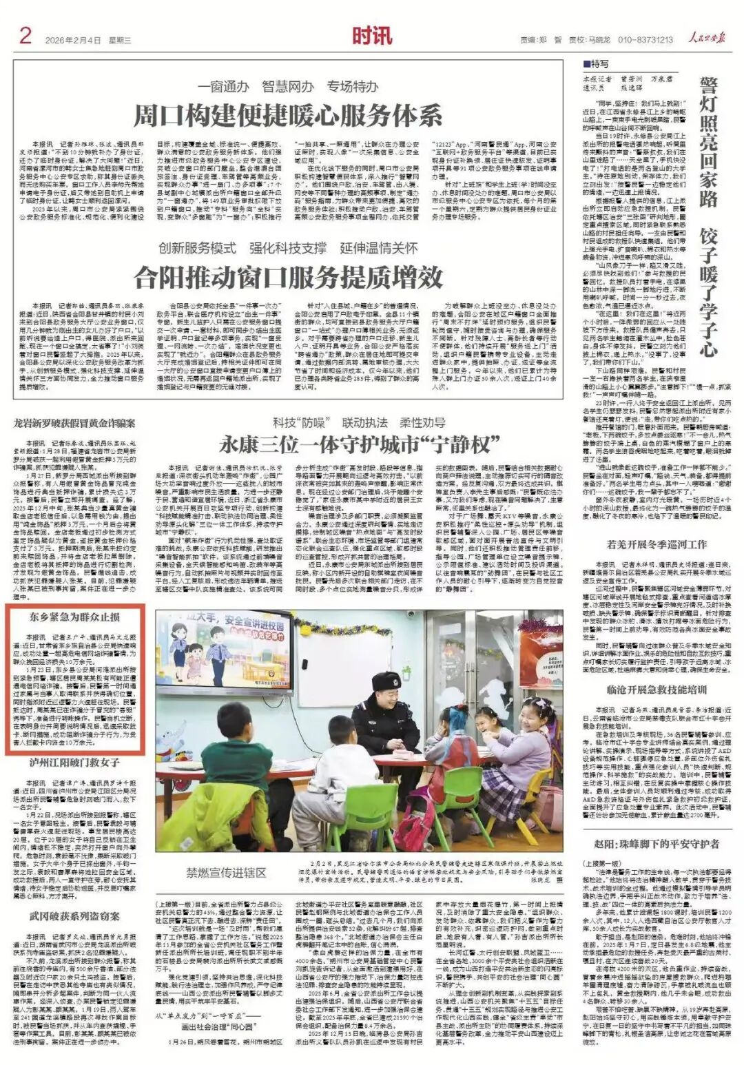 2月4日,《人民公安报》02版时讯刊发东乡县公安工作,图文如下: