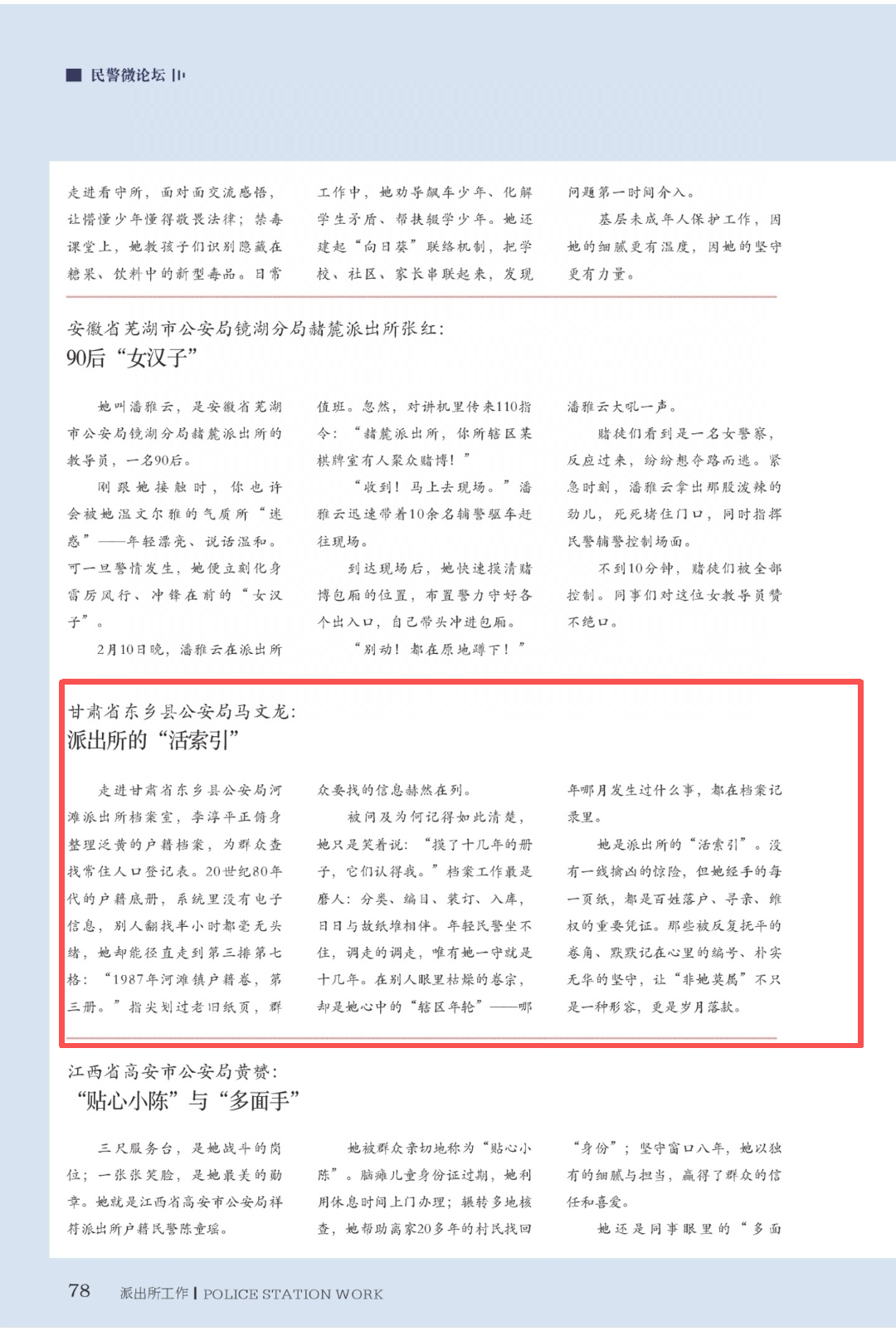 △《派出所工作》杂志第159期报道东乡县公安局河滩派出所档案管理工作
