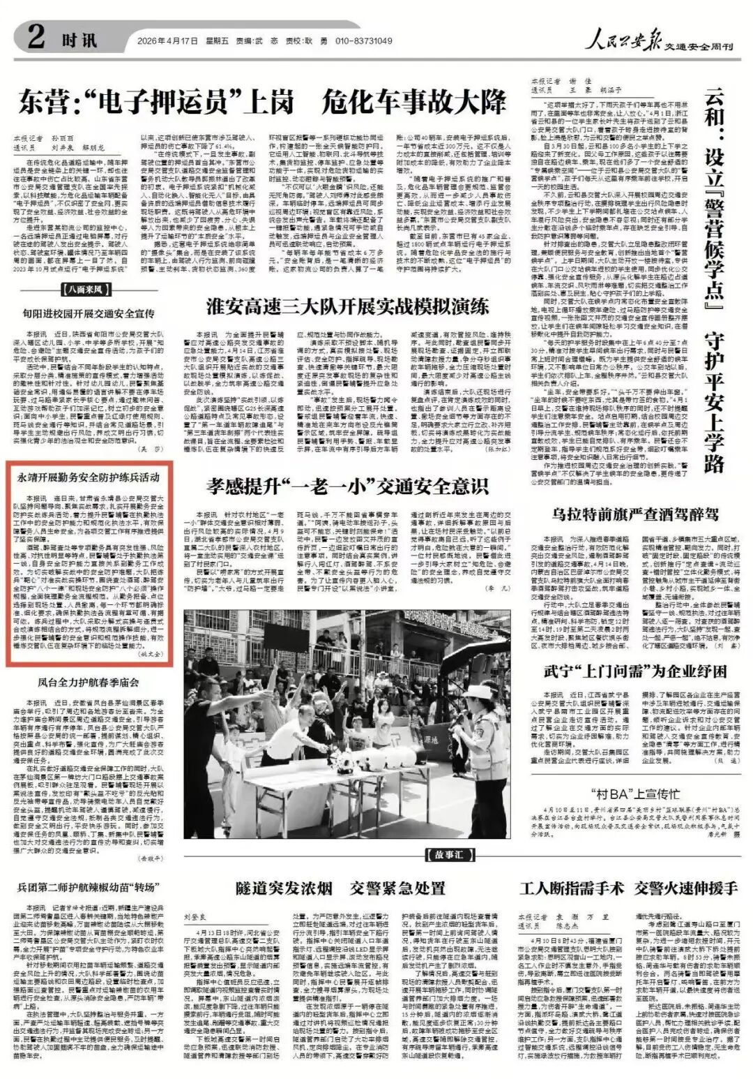 4月17日,《人民公安报》交通安全周刊02版时讯刊发永靖公安工作,图文如下: