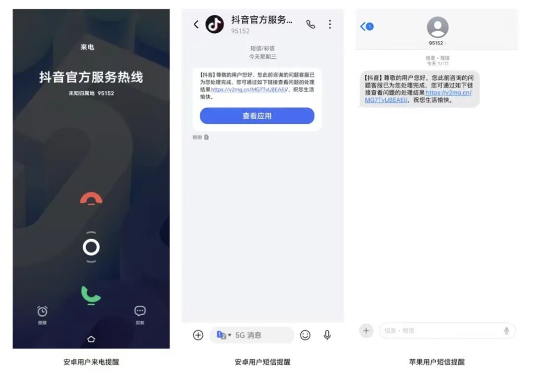今后,用户接听到的来自抖音的正式客服来电、收到的官方短信,均将源自这一号码。换言之,用户如接到非95152号码却自称“抖音客服”的来电,请务必保持高度谨慎,尽快进行验证核实。
