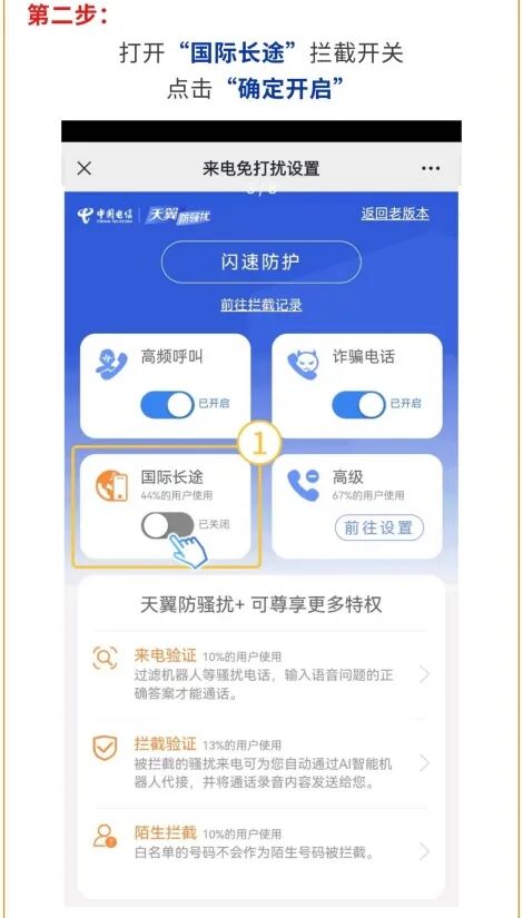 如果没有接受境外来电的需求,可以主动关闭该功能降低被骗风险,守护财产安全。