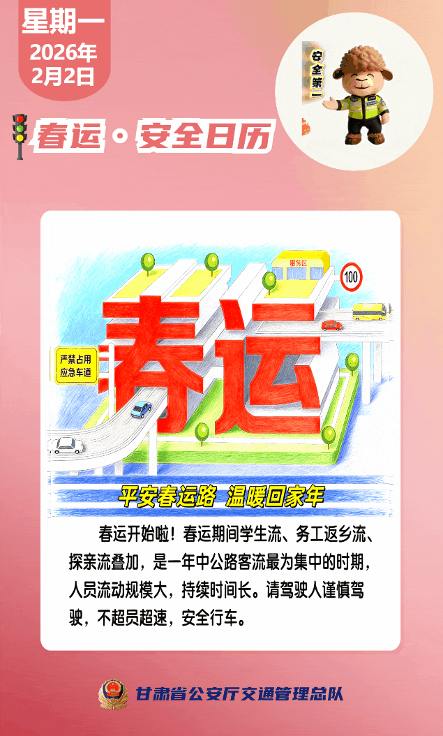 春运关乎我们每一个人,请广大交通参与者守规出行、礼让他人、谨慎驾驶,不超员、不超速、不疲劳驾驶,让每一次刹车都沉稳,每一次避让都暖心。点滴行动汇聚成春运平安的底色,愿我们彼此守护,让团圆之路一路坦途,让平安与温暖伴每一段归途,共筑平安祥和的春运画卷。