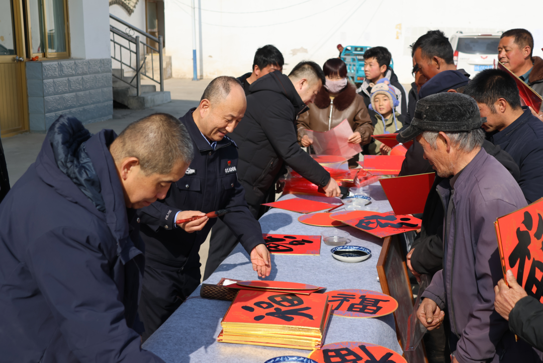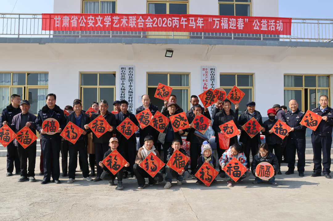 新春将至,年味渐浓。为深入弘扬中华优秀传统文化,传递厅党委对基层民辅警的深切关怀,和对乡村振兴帮扶村群众的温暖祝福,2月3日至4日,厅政治部、省公安文联组织警营书法家,赴积石山县开展“万福迎春”新春走基层活动,将浓浓的年味和真挚的新春祝福,精准送达积石山县公安局、徐扈家派出所、郭干派出所基层民辅警和大杨家村群众身边,营造了欢乐祥和的节日氛围。