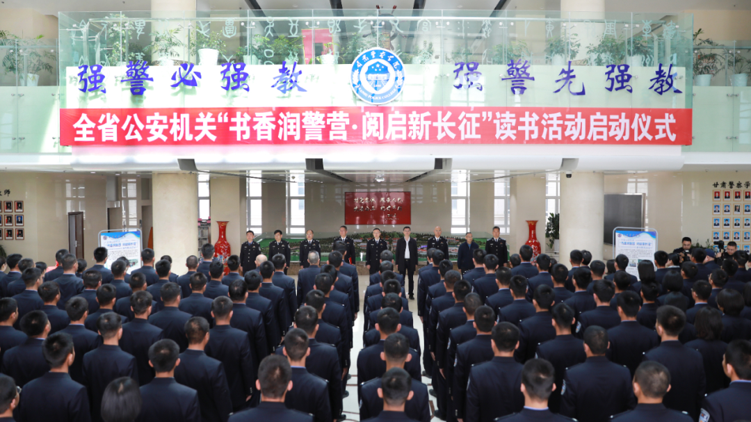 为深入学习贯彻习近平文化思想,认真落实《全民阅读促进条例》,扎实推进书香警营、廉洁警营建设,4月23日,全省公安机关“书香润警营·阅启新长征”读书活动启动仪式在甘肃警察学院举行。省纪委监委派驻省公安厅纪检监察组组长、厅党委委员于小鹏,甘肃省图书馆党委委员、馆长肖学智出席仪式,甘肃警察学院党委副书记赵学琳主持仪式。本次读书活动旨在以锻造“四个铁一般”高素质过硬公安队伍为目标,坚持政治引领、文化浸润、廉洁育警、强警赋能相结合,紧扣中国共产党成立105周年和红军长征胜利90周年等重大节点,以阅读为纽带,进一步铸牢忠诚警魂、展现良好形象,为推进公安工作现代化甘肃实践提供坚强思想保证和有力文化支撑。