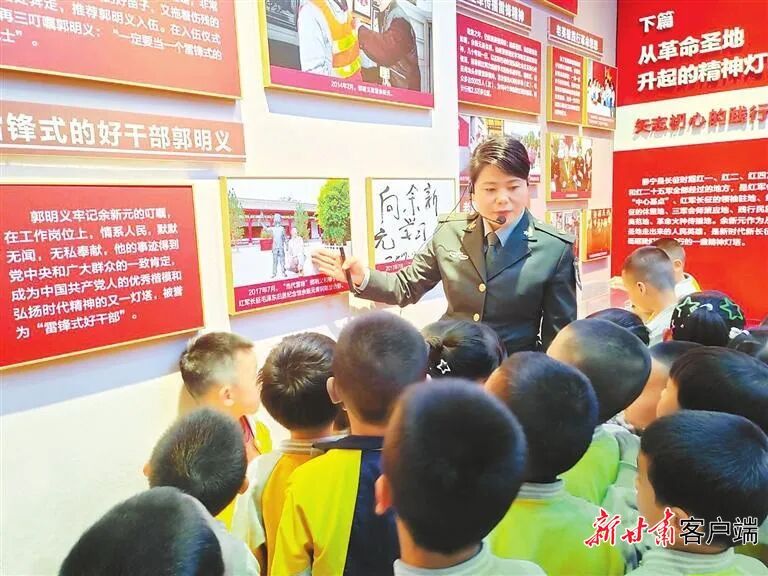 在平凉市静宁县廉政教育基地,讲解员向小学生讲述廉洁故事。(平凉市纪委监委供图)