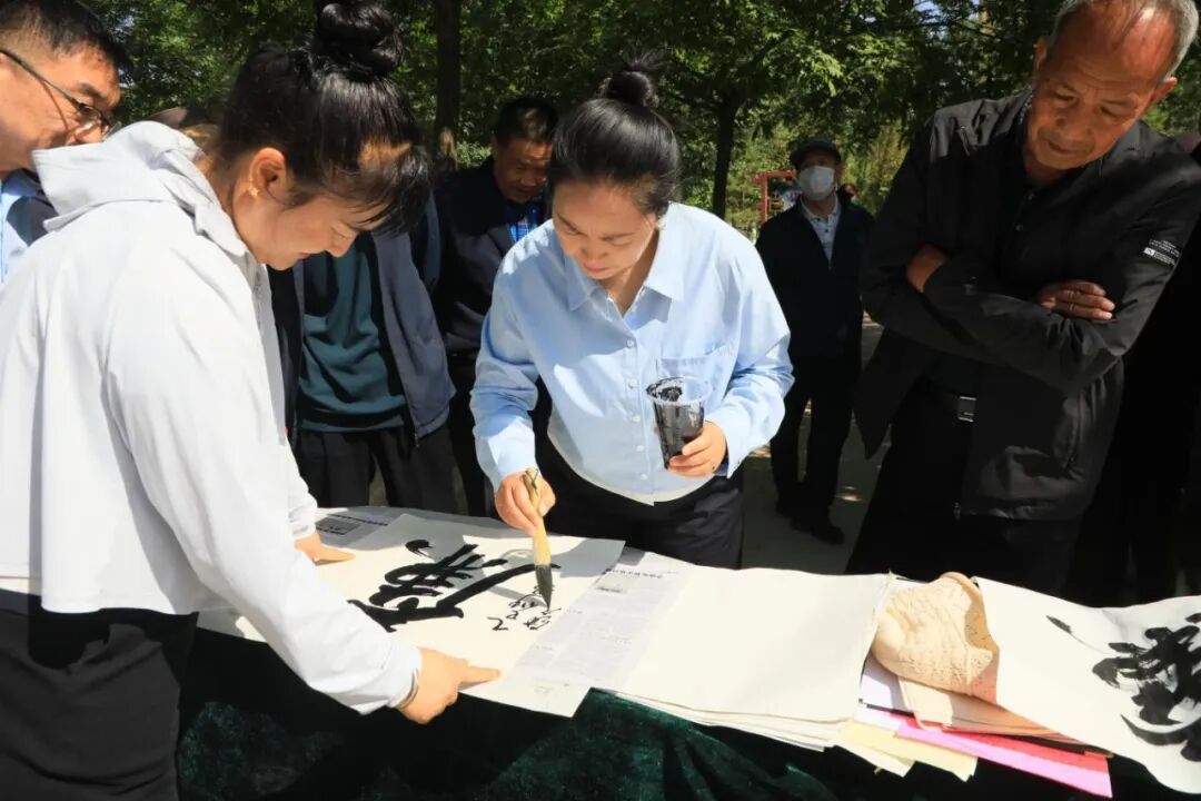 嘉峪关市文联组织书法家走进街道社区,为居民送上廉洁主题书法作品。(嘉峪关市纪委监委供图)