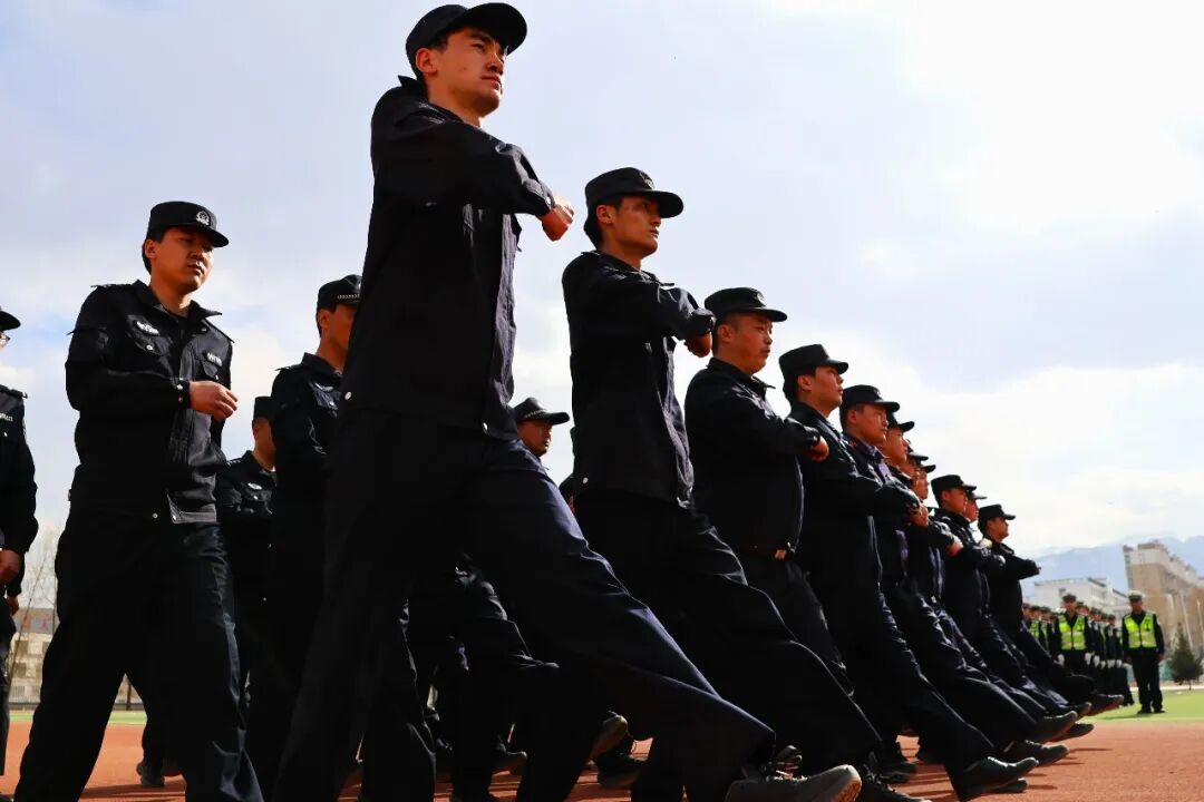 在县城体育场内,春日的静谧被紧张而严肃的景象打破。这里没有闲逸的诗意,只有藏蓝卫士的拼搏与汗水。积石山县公安局的民辅警们身着整齐制服,全身心投入“全警大练兵”训练中,身影挺拔如松,动作铿锵有力。嘹亮的口令在体育场上空久久回荡,过往群众纷纷驻足观望,赞叹公安队伍作风过硬;整齐的步伐踏在地面,发出厚重沉稳的声响,是对平安积石最坚定的承诺。