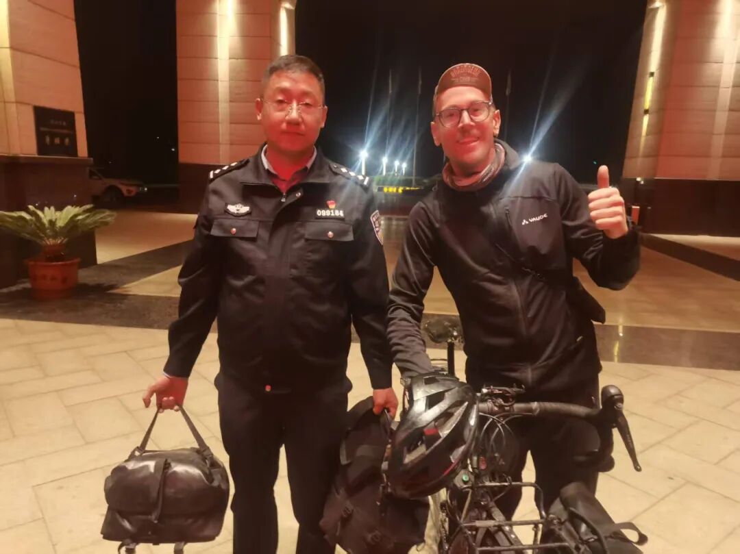 通过翻译软件,民警了解到,该男子是来自法国的骑行爱好者,正独自一人开启周游世界的骑行之旅,当晚计划从盐锅峡镇骑行前往永靖县城。不料天色渐暗,夜间气温骤降,随身携带的食物和饮用水已消耗殆尽,加之对当地路况不熟悉,骑行计划受阻,无奈之下只能向派出所求助,希望能得到前往县城的帮助。