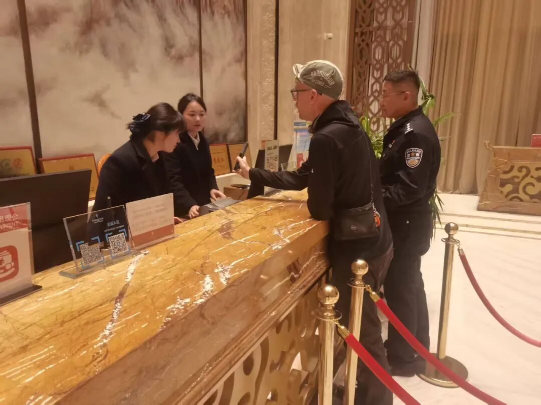 “放心,我们送你过去!”得知情况后,民警当即决定驾车将其安全送往目的地。考虑到男子骑行一天身体疲惫,民警还贴心为其准备了热水和食物。途中,民警通过翻译软件简单介绍了永靖县的风土人情,缓解了男子的陌生感。半小时后,车辆安全抵达酒店。办理好入住手续后,法国游客感动不已,连连竖起大拇指,用中英文反复说道:“Thankyou!谢谢你们,中国警察太棒了!”朴实的话语里,满是对中国民警暖心服务的认可与赞誉。